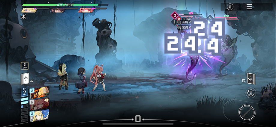 キャラのHPゲージの下にある紫色のゲージがストレス値を表しており、これが満タンになると精神崩壊が発生。