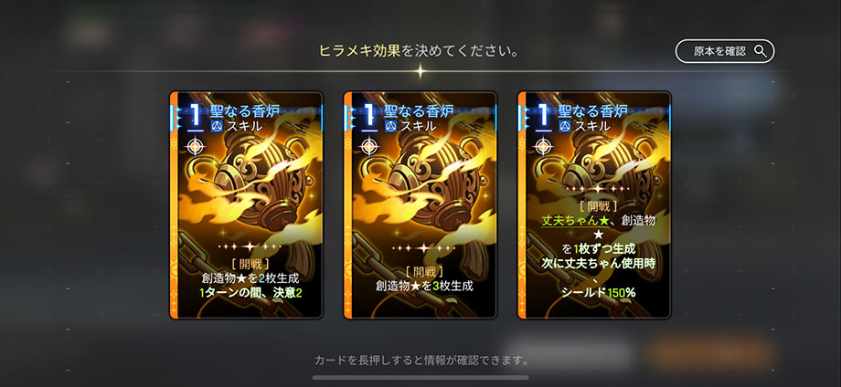 この場合「聖なる香炉」に効果が追加され、その効果3種の中から一つを選んで適用できる。