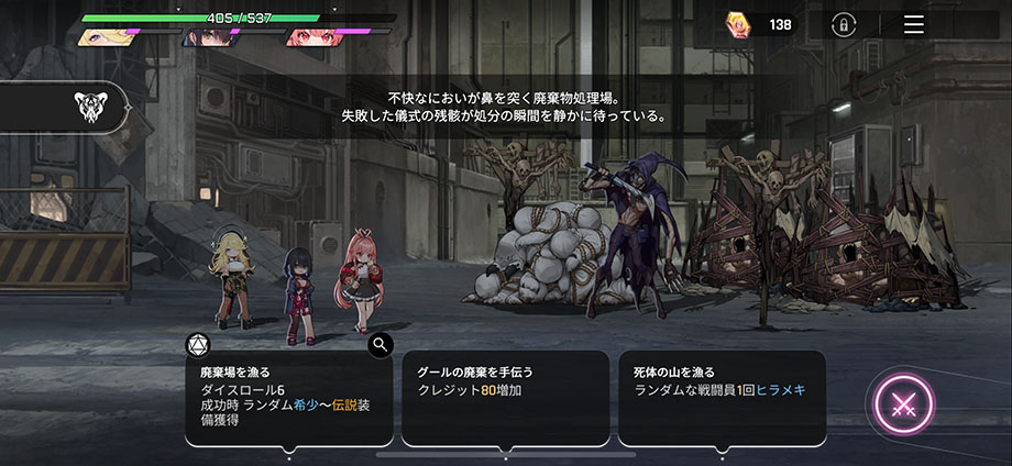 道中ではイベントが発生し、装備を手に入れたりクレジットが増やせたりする。