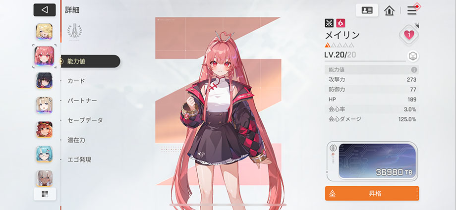 一例として、このメイリンというキャラクターは、SSRのアタッカー(このゲームでは「ストライカー」という)。