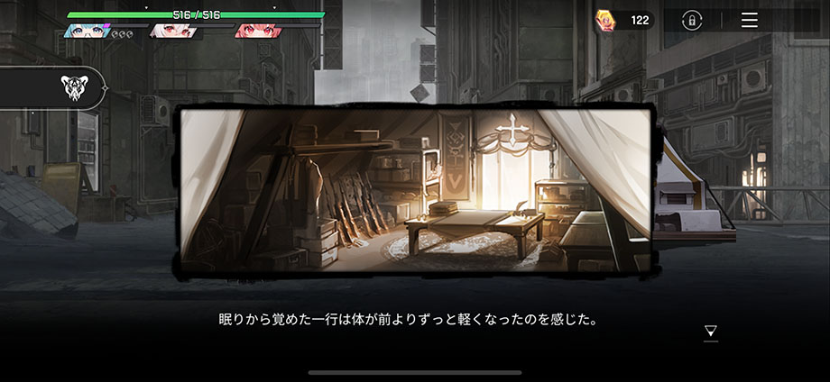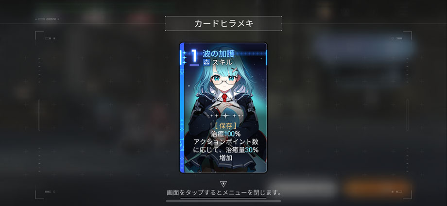 この時点で、戦闘員の潜在力1を解放しておくと、開始と同時にカードのヒラメキが発生して固有カードを1枚入手することができます。