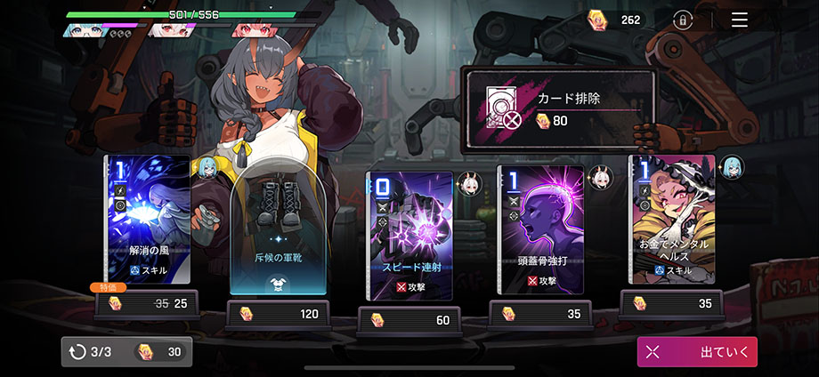 クレジットと引き換えに装備を買ったり、カードを削除することが可能。
