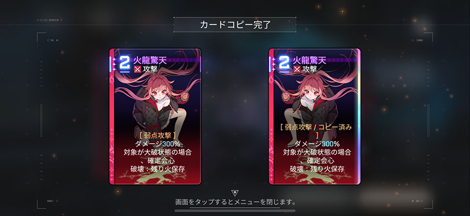 コピーカードはイラストが左右反転し、【コピー済み】タグが付く。