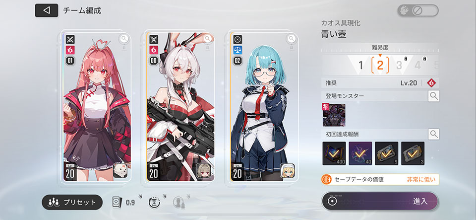 難易度の割にキャラの育成が進んでしまったので、だいぶ楽勝でした。