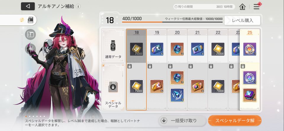 レベル30に到達し、課金をするとここでしか入手できない限定パートナーが交換できる。
