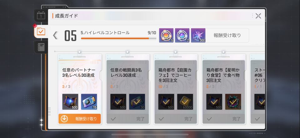 結構やることがあるように見えるけど、一回達成すればデイリー自体は軽めなので、ゲーム楽しい!楽しい!ってなってるうちにあらかたクリアしてしまうのが良さそう。