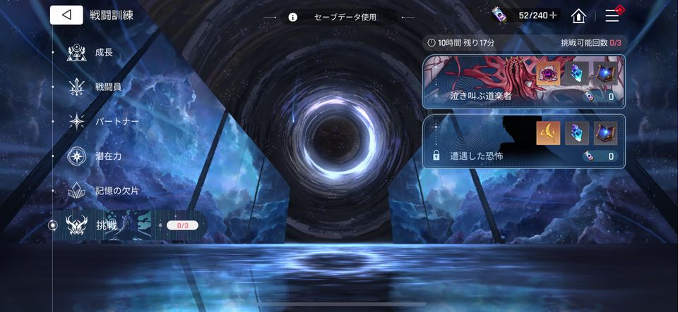 こっちにある「シミュレーション5回完了」を達成しようと思うと、消費スタミナが多い「記憶の欠片」周回はしんどいかも。