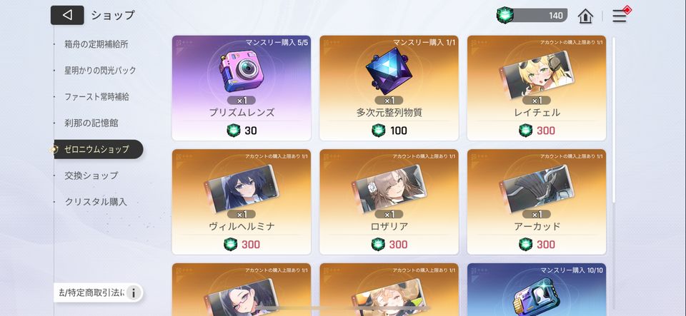 ゼロニウムを使うショップでは、財貨を300貯めると★4パートナーを選んで交換できる。