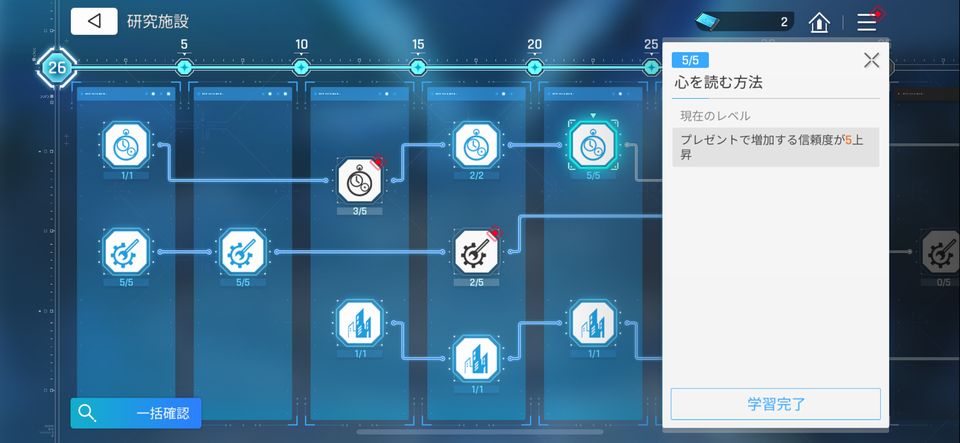 | エーテル上限解放 | だいぶ先の研究内容になるが、エーテル(スタミナ)の上限が増える |