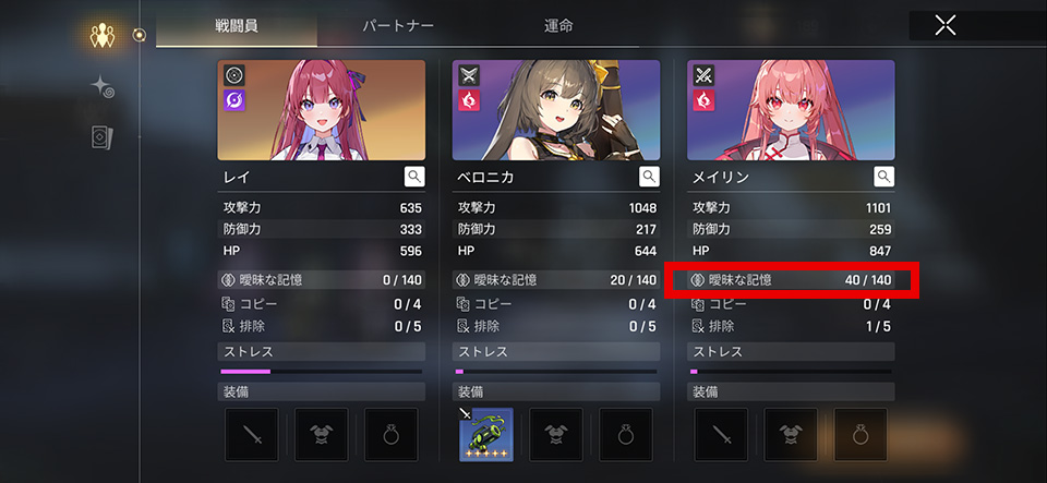 カオスを周回して作るセーブデータにはコスト0で得られる要素と、入手するたびにコストがかかる要素があり、後者の上限値が「曖昧な記憶」の数値にあらわれます。
